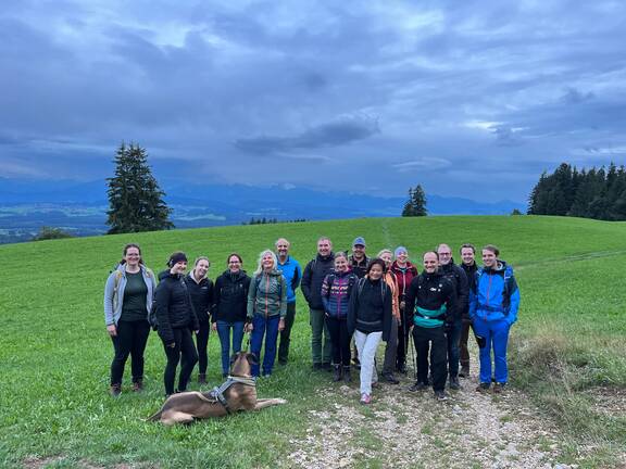 Die Tour auf den Auerberg bei Bernbeuren ist nicht sehr anspruchsvoll, aber landschaftlich wunderschön. Und außerdem geht es ja vor allem draum, gemeinsam mit den Kollegen die Arbeit Arbeit sein zu lassen, Spaß zu haben und sich zu bewegen.