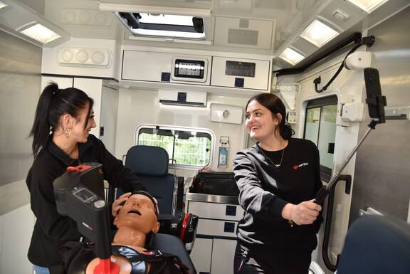 Die Arbeit bei corpuls ist wirklich sehr abwechslungsreich, ich lerne viele verschiedene Unternehmensprozesse kennen und bin mit unterschiedlichen Kollegen in Kontakt. Aktuell darf ich in die Marketingabteilung schnuppern (hier im Foto posen wir für eine Kampagne), ich war aber auch schon im Kundendienst, im Einkauf, am Empfang und in anderen Abteilungen. Im Vertrieb & Kundendienst habe ich zum Beispiel viele Einblicke in unsere Produkte bekommen und gleichzeitig viel über den Umgang mit Kunden gelernt. Am Empfang habe ich allgemeine organisatorische Abläufe kennengelernt wie z.B. das Erstellen von Schulungsnachweisen und die Verwaltung unserer Autos. Hier nehmen wir aber auch Besucher in Empfang, also zum Beispiel Kunden, Geschäftspartner oder Bewerber und wir nehmen Telefonanrufe entgegen.