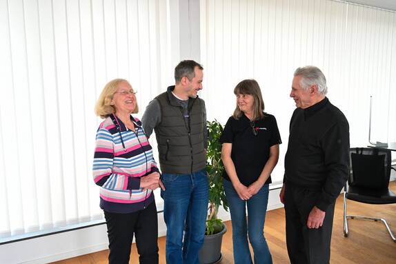 Bei der kleinen Abschiedsfeier blickten Firmengründer Günter Stemple (rechts), seine Frau Adesta sowie deren Sohn und corpuls-Geschäftsführer Klaus Stemple gemeinsam mit der treuen Mitarbeiterin auf die Anfänge und die Entwicklung des Unternehmens zurück und bedanken sich für Ihren Einsatz und ihre Loyalität. Auch den Kolleg:innen wird die erfahrene Mitarbeiterin abgehen, sie haben sie als stets „freundlich und hilfsbereit“ erlebt. Maria freut sich auf die viele freie Zeit. „Gleichzeitig werden mir die Kollegen und der gewohnte Gang in die Arbeit aber sicher abgehen.“